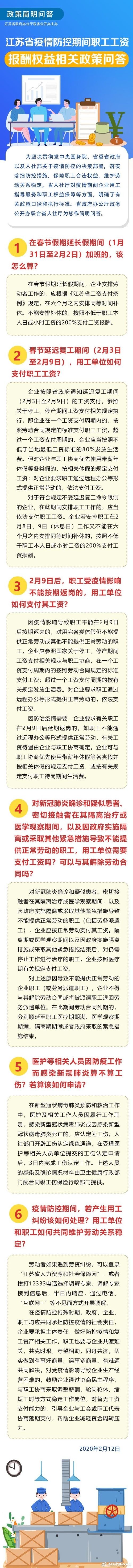 江苏省疫情防控期间职工工资报酬权益相关政策问答
