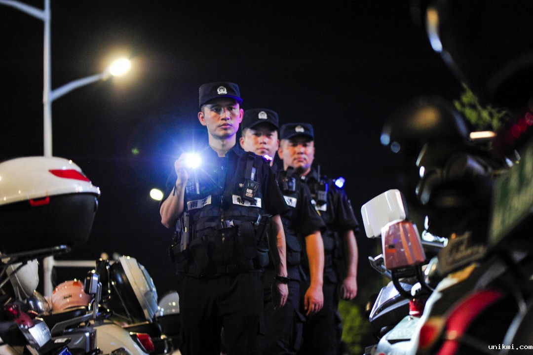 夜幕降临,街头巷尾,警灯闪烁,警车穿行,随处可见“公安蓝”守护人民安宁。