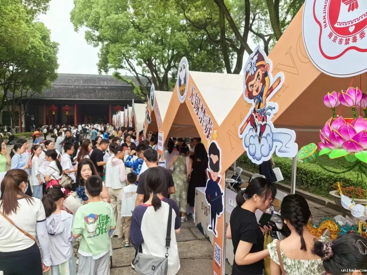 在江苏禁毒展览馆活动现场,丰富多彩的展馆内容、形式多样的禁毒文艺表演和禁毒宣传集市吸引众多游客前来参观,而带有禁毒元素的南京花灯、无锡泥人、徐州缉盗荣归图拓片、常州刻纸等具有传统文化的禁毒文创作品更是寓教于乐,受到大家热烈欢迎,众多市民在这里“一站式”打卡。现场还安排了禁毒机器人互动,并向市民展示各类先进的禁毒装备,南京市禁毒支队缉毒犬的“搜毒”科目表演,赢得了现场市民阵阵掌声。连日来,江苏各地创新网上网下、全省联动、多元互动、活泼新颖的宣传模式,向广大青少年和社会各界群众集中宣传新型毒品危害及防范知识。扬州将禁毒宣传送进各大高校,在江苏旅游职业学院,以真实案例改编的扬州评话表演,为同学们揭开新型毒品的各种伪装;常州举办“龙城少年禁毒研学营”,通过理论讲解、实物展示、禁毒剧本杀、文创制作等丰富多样的授课形式,提升青少年识毒防毒拒毒意识,护航健康成长;苏州组织人大代表“聚话禁毒”讲坛,为禁毒工作积极建言献策。6月份以来,全省累计开展全民禁毒主题宣传活动3100余场次,在全省持续掀起禁毒宣传热潮,“6·26”国际禁毒日当天,全省百馆联动共开展参观展陈、游戏互动、文创集市、网络直播等各类禁毒主题宣传活动900余场次,接待参观宣教45万人次。