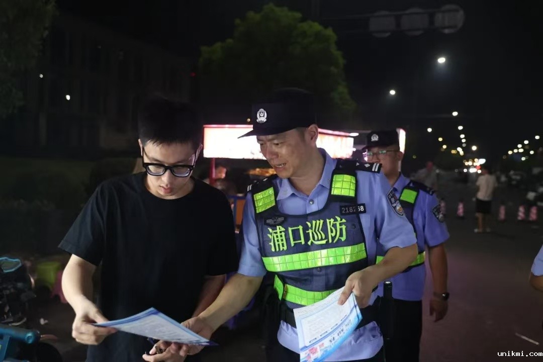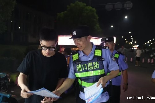 图为8月9日晚,南京市公安局浦口分局警力在辖区桃园夜市开展巡查宣防。